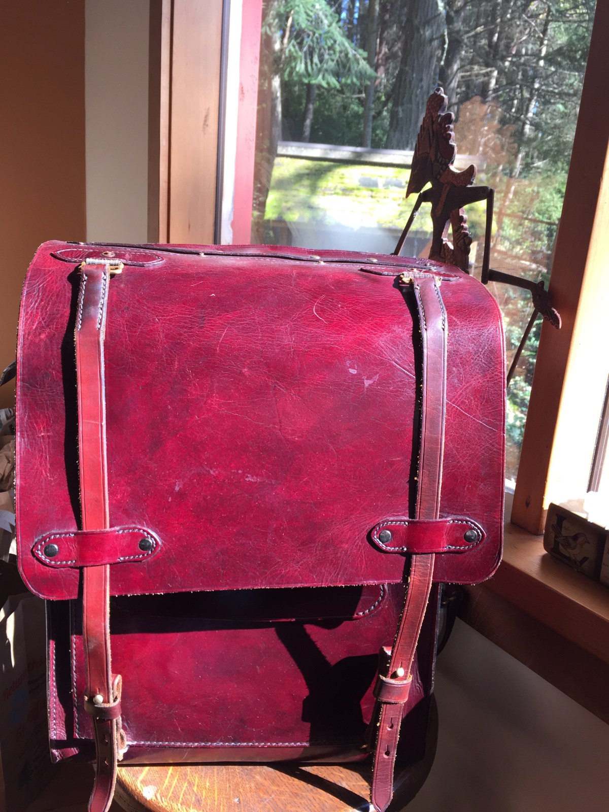 Note: my personal veg tanned leather rucksack, seen above, is not nearly this RED in real life.